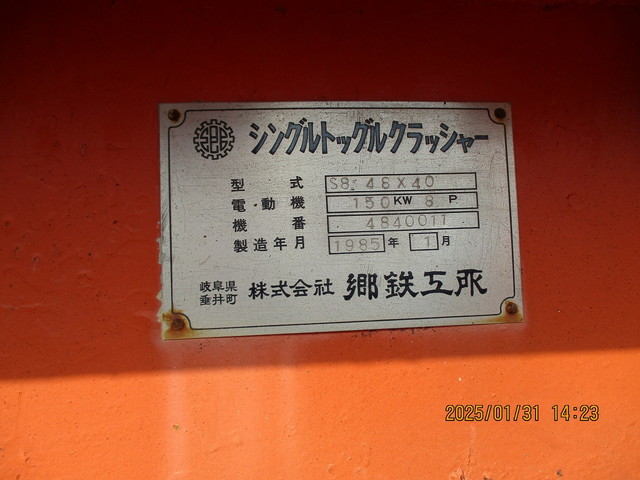 | シングルトッグルクラッシャー | 郷鉄工所 | S8-48×40 | 1985年1月 | 詳しくはこちら |