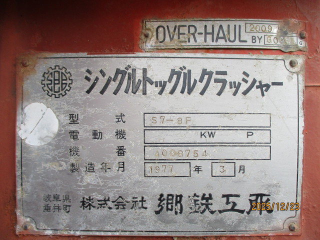 | シングルトッグルクラッシャー | 郷鉄工所 | S7-8F | 1977年3月 | 詳しくはこちら |